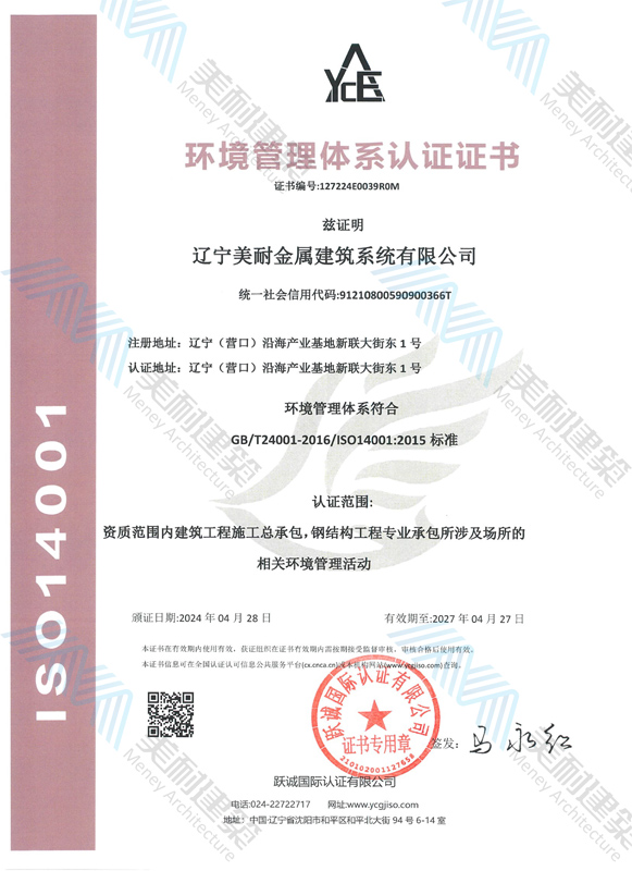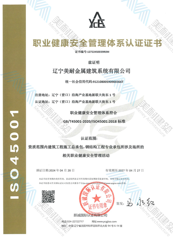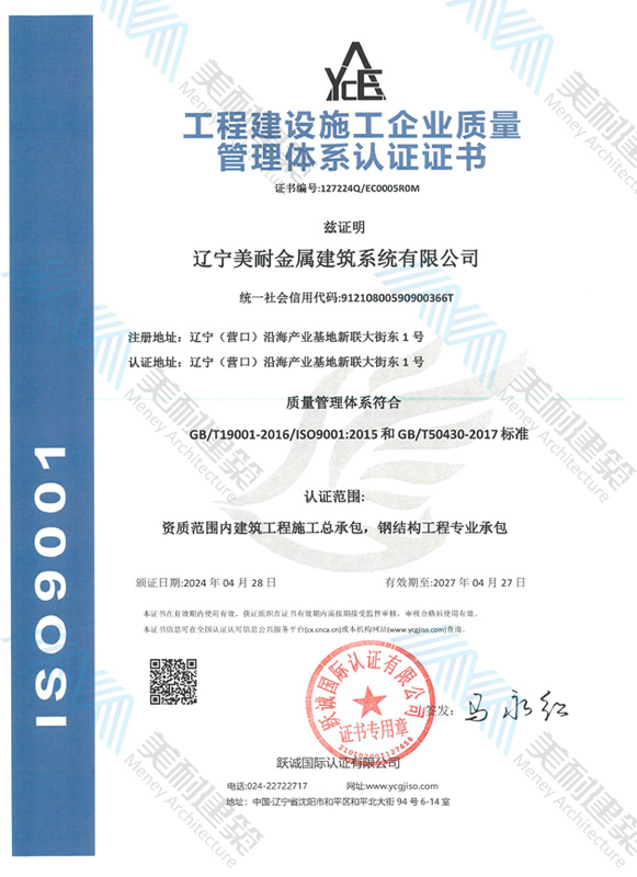遼寧美耐金屬建筑系統(tǒng)有限公司位于遼寧(營(yíng)口)沿海產(chǎn)業(yè)基地,專(zhuān)注于預(yù)制金屬建筑系統(tǒng)領(lǐng)域,是一家集工業(yè)建筑設(shè)計(jì)、制作、施工及相關(guān)的技術(shù)咨詢與服務(wù)為一體的綜合性服務(wù)企業(yè)。作為國(guó)家鋼結(jié)構(gòu)協(xié)會(huì)會(huì)員、中國(guó)建筑金屬結(jié)構(gòu)協(xié)會(huì)會(huì)員單位與國(guó)家高新技術(shù)企業(yè),美耐建筑集建筑工程施工總承包、鋼結(jié)構(gòu)工程專(zhuān)業(yè)承包等多種資質(zhì)于一身,并擁有22項(xiàng)鋼結(jié)構(gòu)建筑領(lǐng)域?qū)@?項(xiàng)軟件著作權(quán)。